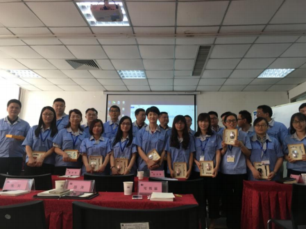 哲學工作坊的成員們領獎之后,進入了本次培訓的主題:宣講師授課。來自翰博集團各個部門的首批 18 位宣講師們對翰博經營哲學 36 條做出了自己的理解,并且傳授給了參會的各位領導、同仁。聽課的專家們、領導們也給出了真誠、公正的建議和點評。其中,來自集團 SBU 背光模組事業部的鮑大為部長講授的《敬業愛崗》和《持續付出不亞于任何人的努力》憑著真實接地氣的案例和自己精彩的講授獲得了領導們的一致好評。