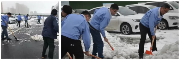 天亮了,上班路舉步維艱。大家幾乎是滑行到公司,雪很美,但是也會給我帶來負擔。我們博訊廠區的廣場上鋪上了厚厚的積雪,給上班的同事們帶來了不便。行政人員第一時間組織人員進行鏟雪,雖然當時工具不齊全,但是輪番上陣也要融化這厚厚的雪。
