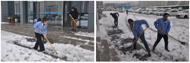 工具齊了,人齊了,大家在周健生總、鄂冠宇總的帶領下擼起袖子加油干。雪的寒冷抵擋不住翰博人的熱浪,廠區的主路清理干凈。在掃雪的過程中大家表現積極,充分的展現了翰博人的團結和齊心協力。